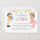 Faites connaître à vos invités le sexe de votre bébé dans la soirée révélateur en les invitant avec cette invitation mignonne et sucrée de la fête de révélation de genre avec des éléphants roses et bleus.