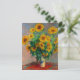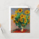 Carte représentant la peinture à l’huile de Claude Monet Bouquet of Sunflowers (1881). Beaux tournesols dans un vase bleu au-dessus d'une table rouge. Un grand cadeau pour les amateurs d'impressionnisme et d'art français.