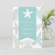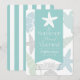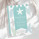 Cette invitation à la douche nuptiale chic de la côte "L'été je suis marié" présente un ruban bleu turquoise clair, des coquillages, une tortue de mer/honu, et des étoiles de mer dans les tons bleu pastel et vert. Le côté Reverse présente un arrière - plan blanc aux rayures bleues turquoise. Personnalisez-le selon vos besoins. Vous pouvez trouver des produits correspondants dans mon magasin.
