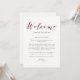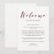 Cette lettre de bienvenue de mariage élégante, à insérer dans vos sacs de bienvenue pour invités de mariage, présente une calligraphie couleur marsala / burgundy ainsi que du texte noir moderne sur un fond blanc propre.