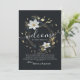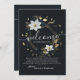Modèle de carte d'invitation de lettre de bienvenue de mariage élégant vintage moderne - Couronne florale élégante noire blanche et or.