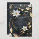 Modèle de carte d'invitation de lettre de bienvenue de mariage élégant vintage moderne - Couronne florale élégante noire blanche et or.