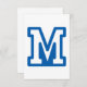 Définissez le ton de votre événement avec ces invitations personnalisées mettant en vedette une lettre universitaire M en gras bleu. Parfaites pour les remises de diplômes, les banquets sportifs ou les fêtes sur le thème de l'école, le design classique en lettres majuscules ajoute une touche sportive et personnalisée. Facile à personnaliser et idéal pour rendre votre rassemblement encore plus spécial.