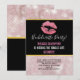 Fête de Bachelorette avec un arrière-plan composé de feuilles tropicales or rose. Superposé sur le dessus est un cadre noir avec une bordure de faux paillettes dorées, à l'intérieur se trouvent des lèvres pailletées rose.