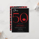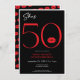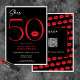 Moderne et chic, cette invitation à l'anniversaire déclare, "elle a 50 ans" et combine le noir et blanc classique avec des accents de rouge vif, avec une paire de lèvres ludique. Le design minimal est un design simple et amusant pour célébrer l'anniversaire de l'événement. L'arrière contient une zone pour un code QR pour la réponse RSVP. Créé par Simply Farmhouse Press.