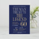 Sa vie a été une grande aventure ! Cette fabuleuse invitation à la fête photo surprise masculine bleu marine de 60e anniversaire qui dit "L'homme Le Mythe La Légende" dans une police classique en argent et or serait parfaite pour demander aux gens de se joindre à vous pour célébrer l'homme dans votre vie de 60e anniversaire. Cette invitation est tendance, design, moderne et contemporaine. Pour voir vos invitations uniques sélectionnez "Personnaliser ce modèle", téléchargez une photo préférée, tapez vos informations et téléchargez une photo préférée. C'est super facile !
