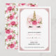 Invitation Licorne Fleurs de Roses Or et Rose Anniversaire I