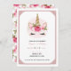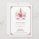 Invitation Licorne Fleurs Roses Or & Rose Fête d'anniversaire