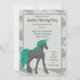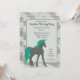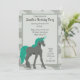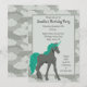 Ces invitations sont parfaites pour les fêtes d'anniversaire sur le thème de la licorne et ont un look élégant et moderne avec une illustration d'une licorne majestueuse et stately en gris charbon foncé et vert sarcelle sur un fond gris plus clair.