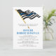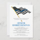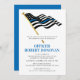 Invitation de fête moderne pour l'application de la loi pour une cérémonie de remise des diplômes de la police ou un événement de retraite de la police. Cette invitation de flic présente un fond blanc classique qui peut être changé en n'importe quelle couleur, le drapeau américain avec la fine ligne bleue qui le traverse, et un modèle de fête simple qui est facile à personnaliser.