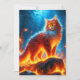Cette image captivante présente un chat debout au milieu des flammes, baigné dans la lumière chaude du feu. Les éléments mystiques et imaginaires de la scène évoquent un sens de l'enchantement, alors que la fourrure du félin s'épanouit dans le brasier. C'est un visuel puissant qui mêle féroce et magique, créant une image inoubliable d'émerveillement et d'intrigue.