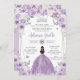 Personnalisez cette élégante Quinceañera florale / Sweet 16 anniversaire invitation facilement et rapidement. Cliquez simplement sur le bouton Modifier à l'aide des outils de conception pour modifier les textes, modifier les polices et les couleurs des polices. Doté d'une douce aquarelle lilas violet, de fleurs blanches, d'une couronne de princesse argentée et de papillons. Tout le texte est modifiable. Parfait pour quinceanera, sweet sixteen, 18ème anniversaire, boule debutante et bien d'autres occasions! Objets correspondants disponibles en magasin. c) Somerset Fine Paperie