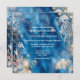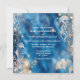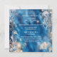Une belle destination côtière; une plage inspirée "sous la mer" invitation de mariage à thème avec un hippocampe bleu et orange d'aquarelle et une méduse entourée de corail; des plantes de récifs océaniques et des bulles d'ivoire qui semblent étinceler et briller contre un arrière - plan bleu profond vibrant. Des modèles blancs pour votre libellé personnalisé apparaissent sur l'avant et l'arrière. Elles peuvent être customisées pour convenir à toute occasion spéciale.