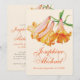 Belle faire-part de mariage d'art de la cloche orange. Modifiez cette invitation avec vos mots. Design unique et peinture originale crayon et aquarelle de Sarah Trett.
