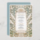 Ce faire-part de mariage Art Nouveau raffiné saisit la délicate beauté des lys blancs de la vallée entrelacés de feuillage rampant et de défilement orné. Le côté avant présente un cadre en ivoire et or pâle orné d'accents floraux sculpturaux, créant un sentiment de mouvement et de romantisme dans le véritable esprit du mouvement Art Nouveau. Des teintes turquoises et crème et douces forment l'arrière - plan, mettant l'accent sur l'élégance des formes botaniques qui s'enroulent naturellement autour de l'espace texte bordé. La typographie harmonise un style serif avec des accents de script fluides, donnant une tonalité sophistiquée et intemporelle aux détails mariages. Sur le dos, une charmante crête monographique présente un arbre fleuri entouré de branches de laurier et de ruban, donnant à la pièce une touche héraldique et personnalisée. Ce design est parfait pour les mariages d'inspiration nature, vintages ou romantiques classiques.