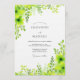 A vibrant burst of lime green blooms and foliage creates a fresh, organic feel. Delicate greenery cascades across the design, evoking a lush and natural aesthetic perfect for an outdoor affair.