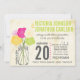 Rose branché Ranunculus Mason Jar Photo moderne Pink Lime Jaune et Grey Coeurs mignons Zig Zag Typographie Mariage Invitations