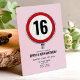 Panneau de limite de vitesse pour votre fête d'anniversaire de 16 ans. Célébrez cette étape avec ce thème de panneau routier moderne. Vous pouvez personnaliser ce panneau de limite de vitesse avec votre âge. Veuillez vérifier la collection assortie pour les ARTICLES COORDONNÉS. Œuvres originales de PUPSIKU STUDIO. Produit 100% unique.