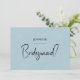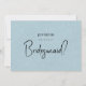 Typographie de script noir, minimaliste et lunatique, personnalisable, avec arrière - plan de texture de lin bleu clair. Serez-vous ma demoiselle d'honneur ? La texture en lin imprimé bleu clair apporte une touche d'élégance classique et organique. D'autres couleurs sont disponibles.