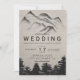 Invitation lin rustique aquarelle forêt montagnes mariage