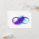 Symbole de l'infini avec une belle plume peinte dans des couleurs vives violettes et bleues sur fond blanc.