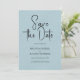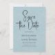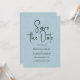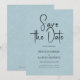 Whimsical minimaliste moderne, personnalisable typographie de script noir, élégante invitation à sauvegarder la date. La texture en lin imprimé bleu clair arrière - plan ajoute une touche d'élégance classique et organique. D'autres couleurs sont disponibles.