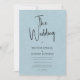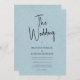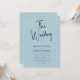 Whimsical minimaliste moderne, personnalisable typographie de script noir, élégante invitation de mariage. L'arrière - plan de texture de lin imprimé bleu clair apporte une touche d'élégance classique et organique. D'autres couleurs sont disponibles.