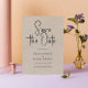 Whimsical minimaliste moderne, personnalisable typographie de script noir, élégante invitation à sauvegarder la date. L'arrière - plan de texture de lin imprimé de couleur claire apporte une touche d'élégance classique et organique. D'autres couleurs sont disponibles.