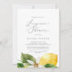 Cette invitation moderne à la douche en lingerie de jardin citron est parfaite pour une douche nuptiale de printemps ou d'été. Le design méditerranéen rustique présente de beaux citrons aquarellés aux fleurs blanches bohème et d'élégants feuilles verts.