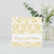 Gold, Cream Floral Damask Pattern Wedding Invitations avec un style vintage et une belle police de script. Format Carré avec espace pour écrire au nom du client. Choisissez le papier ordinaire pour vous assurer qu'il est facile d'écrire sur vos invitations. Pour d'autres couleurs de damas, veuillez contacter luxuryweddinginvitations@gmail.com