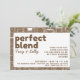 Un wedding shower pour les amateurs de café qui sont "le mélange parfait". Espresso brun et blanc invitation avec un amusant arrière - plan de tasses et pots de café, police propre, et disposition artistique. Invitations invités à verser un peu d'amour pour le couple heureux! Imprimez cette invitation cool ou numériquement téléchargez-la et obtenez le café brassant! Idéal pour la douche de mariée.