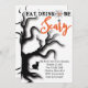 L'invitation de Halloween mangent, boisson et soient l'invitation adulte effrayant qui est noir et blanc avec effrayant dans l'orange. Texte personnalisable ! L'espace supplémentaire pour le texte supplémentaire sur le dos.