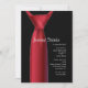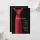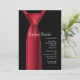 Une invitation chic à une soirée de garçon avec une cravate rouge sur une chemise noire. (Vtzy) <br/><br/>La carte est facile à personnaliser avec votre libellé, police, couleur de police et choix parmi six types de papier.<br/><br/>Pas exactement ce que vous cherchez ? Tous nos produits peuvent être conçus sur mesure pour répondre à vos besoins sans frais supplémentaires.<br/><br/>Contactez-nous simplement à askpixieprints@aol.com.<br/><br/>Produits de coordination disponibles :