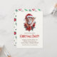 Découvrez l'enchantement de la saison des Fêtes avec cette invitation de Noël du lion, un ajout fantaisiste et réconfortant à vos célébrations festives. Cette charmante carte présente un lion sauvage de safari zoologique coloré orné d'un chapeau de Santa et décoré d'une guirlande de poinsettia rouge, dressée contre une scène hivernale enneigée.