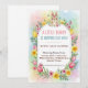 • A cheerful watercolor design featuring a cute bunny with a flower crown, surrounded by an abundant arch of pink and yellow spring flowers like tulips and daffodils. This vibrant set is perfect for an Easter or spring garden-themed baby shower.