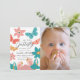 Cette jeune fille moderne "notre petit papillon" à l'invitation photo de 1er anniversaire comprend un arrière - plan blanc avec des papillons, des fleurs et des cristaux avec des nuages rose, bleu turquoise et jaune moutarde. L'envers est orné d'un arrière - plan rose clair avec des motifs papillons. Personnalisez-le selon vos besoins. Vous pouvez trouver des produits correspondants dans mon magasin.
