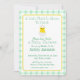 A little chick and green check border card featuring green type fonts to compliment the fun, informal and whimsical design. Timeless !