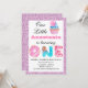 Invitation Little Cupcake Pink Lilac Parties scintillant 1er
