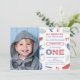 Invitations de premier anniversaire "petit pétard" avec un jeu de couleurs à rayures et étoiles.