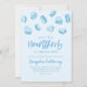Invitation à la fête d'anniversaire du mignon garçon avec illustration de macarons en forme de coeur bleu. Le texte dit "notre petit coeur tourne à X."