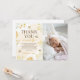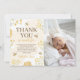 Say thank you with a personal photo from the big day. This wildflower and bee-themed card features space for a custom picture and golden watercolor accents. A wonderful keepsake for family and friends after a sweet first birthday party.