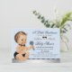 Petite invitation baby shower homme avec adorable petit bébé garçon habillé dans une jolie couche noire et cravate arc sur un joli bébé arrière - plan bleu et noir. Vous pouvez facilement customiser cette invitation de baby shower mignon petit homme pour votre événement en ajoutant simplement vos détails dans le style de police de votre choix. Vous pouvez également modifier la couleur de l'arrière - plan.