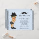 Petite moustache baby shower invitation avec adorable dapper petit homme bébé portant des chaussures, casquette et habiller couche sur un arrière - plan noir et bleu bébé. Cette adorable petite invitation de baby shower homme est facilement customisée pour votre événement en ajoutant les détails de votre événement, le style de police, la taille et la couleur de police et le libellé. Vous pouvez supprimer l'arrière - plan et modifier la couleur.
