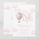 Cette invitation charmante pour un premier anniversaire comporte un ballon rose en forme de montgolfière et des nuages, ainsi qu'une typographie élégante. Conçue par Thisisnotme©