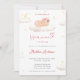 A soft and heavenly baby shower invitation featuring a sweet sleeping angel baby nestled among fluffy clouds, crescent moon, and delicate stars. Designed in gentle blush pink with subtle gold accents, this celestial invitation creates a dreamy and heartfelt atmosphere—perfect for celebrating a truly heaven-sent baby girl. A timeless and graceful choice for a memorable baby shower celebration.