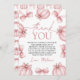Send warm fall gratitude with this Little Pumpkin is Turning One thank you card! Featuring watercolor pink pumpkins, satin bows, and soft blush tones, it’s the perfect way to thank guests for celebrating your baby’s first birthday. Ideal for autumn parties, pumpkin patch themes, or rustic chic celebrations.