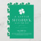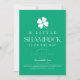 This chic and modern "a little shamrock is on the way" baby shower invitation features a shamrock with sophisticated typography. The reverse side features a white background with a green shamrock pattern. Perfect for St. Patrick's Day baby shower! Personalize it for your needs. You can find matching products at my store.