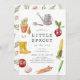 This cute gender-neutral "a little sprout is on the way" baby shower invitation features a white background with a watering can, gardening fork, radish, corn, leek, carrot, garlic, tomato, flower pot, bulb, seeds and gardening boots. The reverse side features a cream background with floral patterns. Personalize for your needs. You can find more matching products at my store.