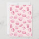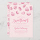 Invitation à la fête d'anniversaire de la mignonne fille avec illustration de macarons en forme de coeur rose. Le texte dit : "notre petite amie tourne à X."