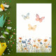 Celebrate your little one with this sweet “Our Little Wildflower” 1st Birthday Invitation featuring a soft yellow background and a charming border of delicate wildflowers along the bottom of the card. Gentle butterflies flutter above the blooms in soft shades of orange, blue, and yellow, creating a whimsical garden feel. The word “Wildflower” is written in a beautiful script font in a color that complements the floral palette, while the party details are displayed in a mix of script and serif fonts for a stylish and easy-to-read design. This invitation is simple to customize, and the back of the card features the same floral graphic with butterflies gracefully flying from the flowers for a perfectly coordinated look.